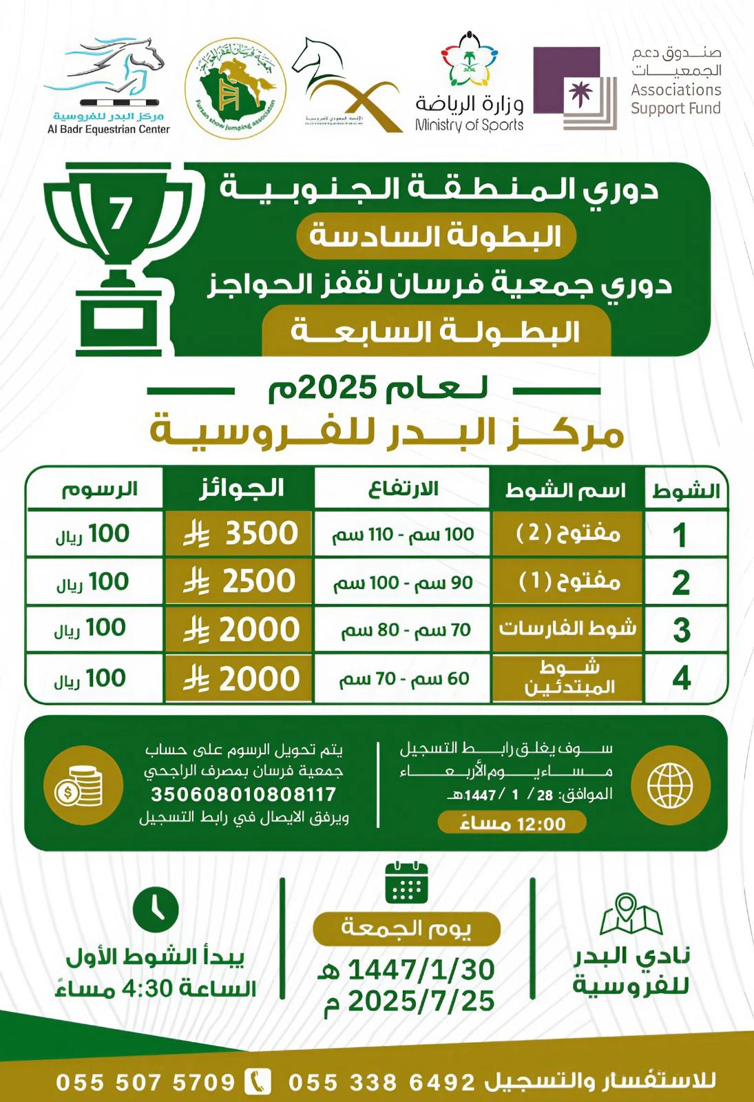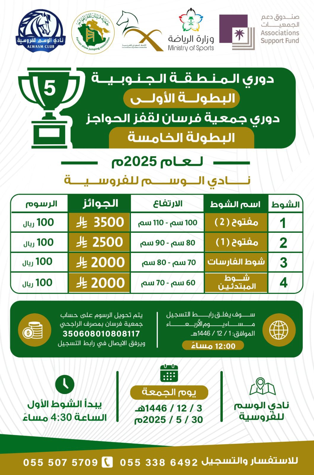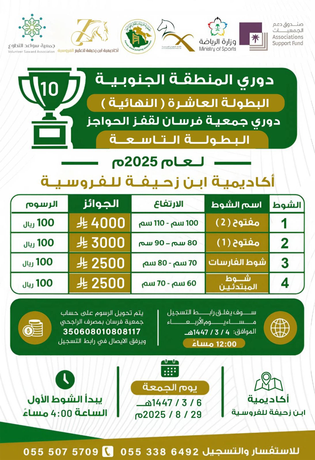 شهدت ميادين الفروسية انطلاقة الدوري الأول للمنطقة الجنوبية لقفز الحواجز لعام 2025 بتنظيم جمعية فرسان، حيث جمع البطولة الأولى من نوعها بين الحماس وروح التحدي.