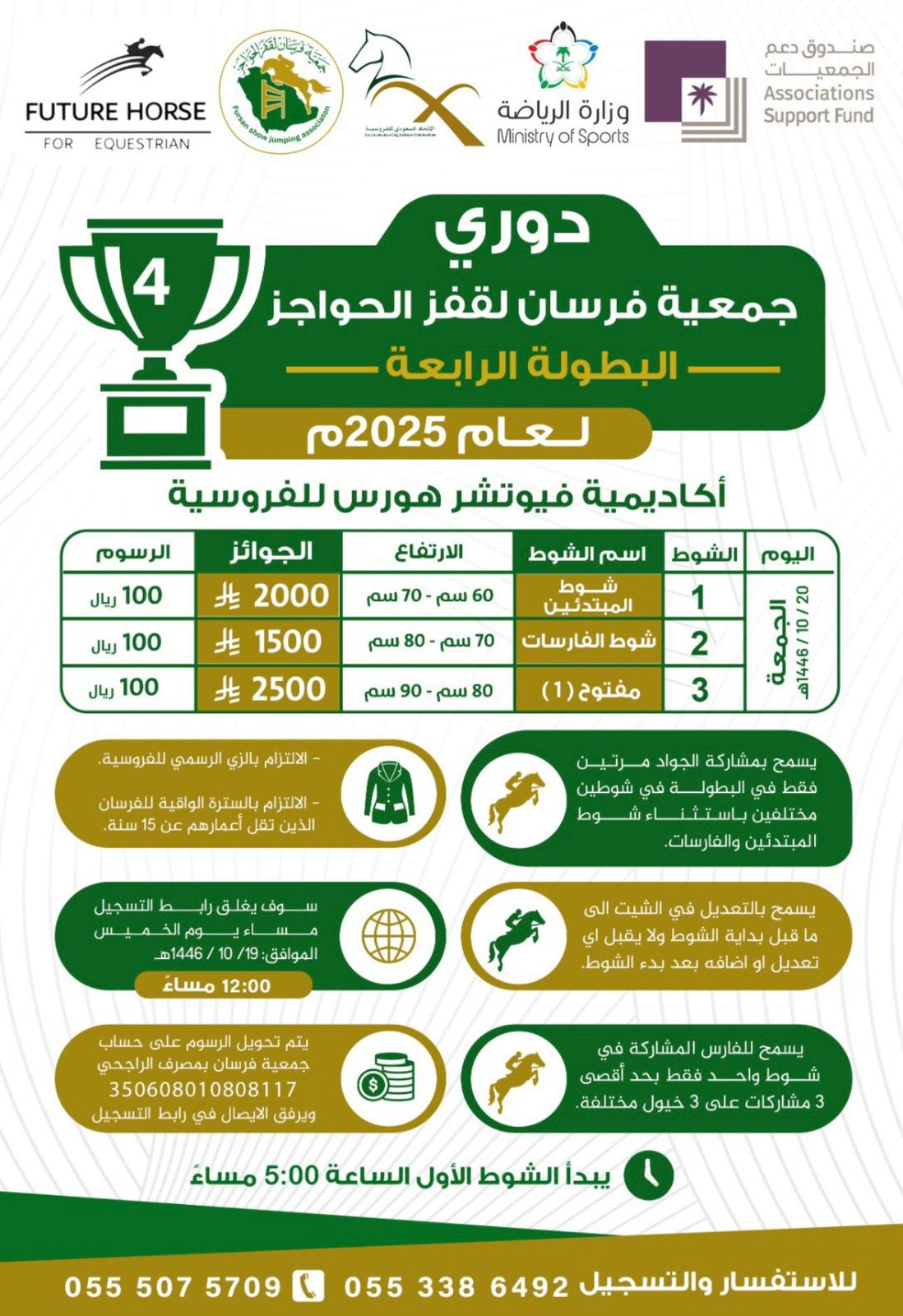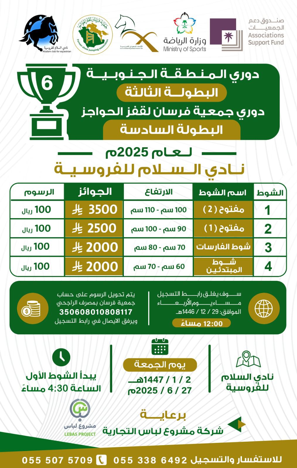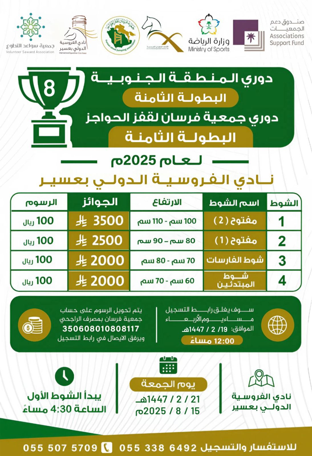 شهدت ميادين الفروسية انطلاقة الدوري الأول للمنطقة الجنوبية لقفز الحواجز لعام 2025 بتنظيم جمعية فرسان، حيث جمع البطولة الأولى من نوعها بين الحماس وروح التحدي.