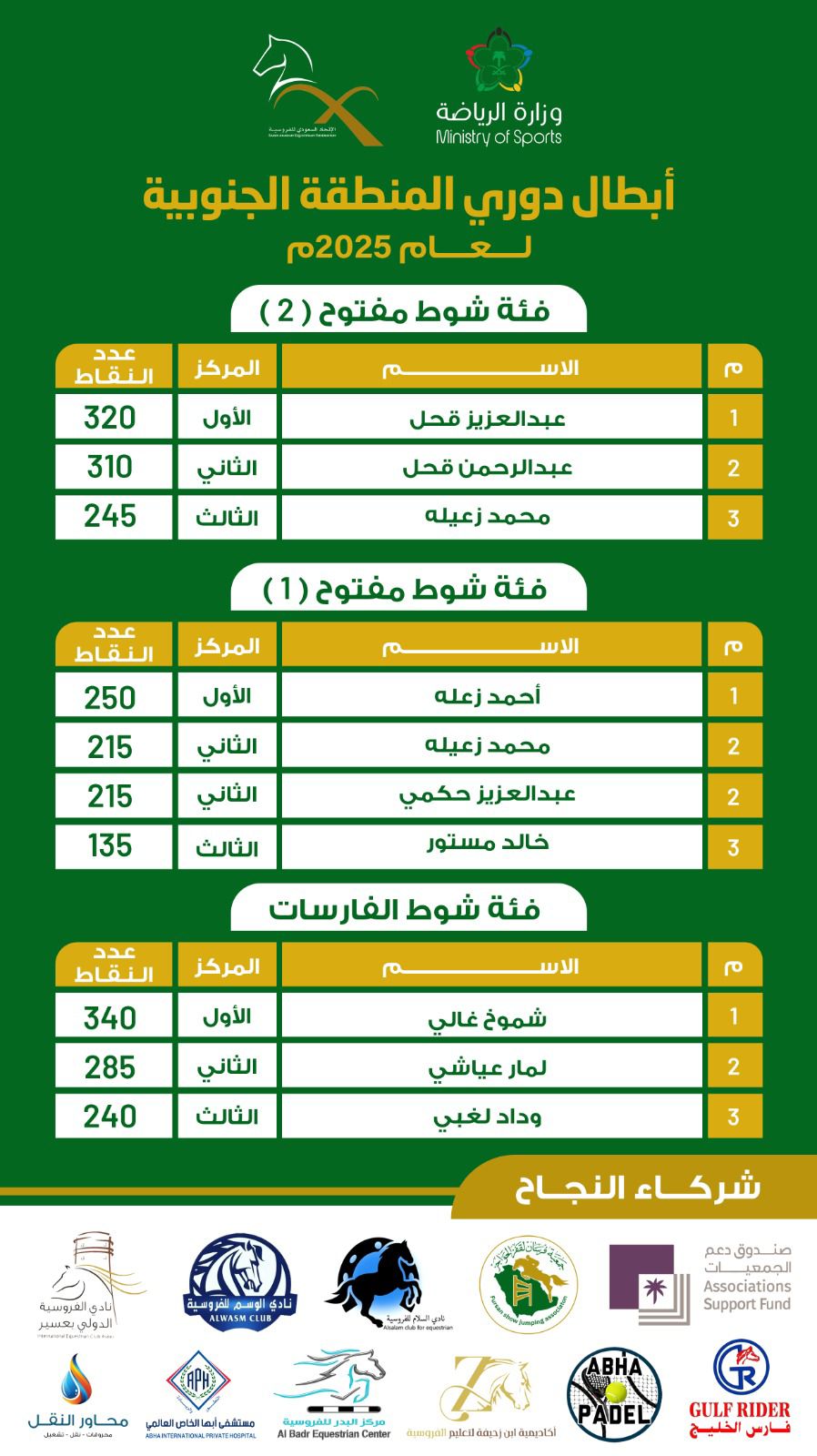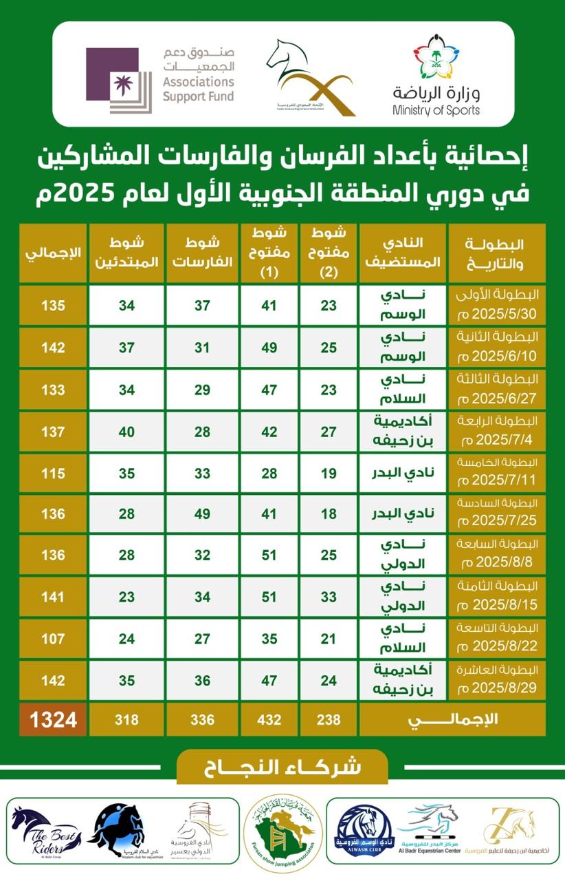 كان هذا الدوري خطوة أولى ناجحة نحو صناعة بطولات نوعية ترتقي برياضة الفروسية في المنطقة الجنوبية